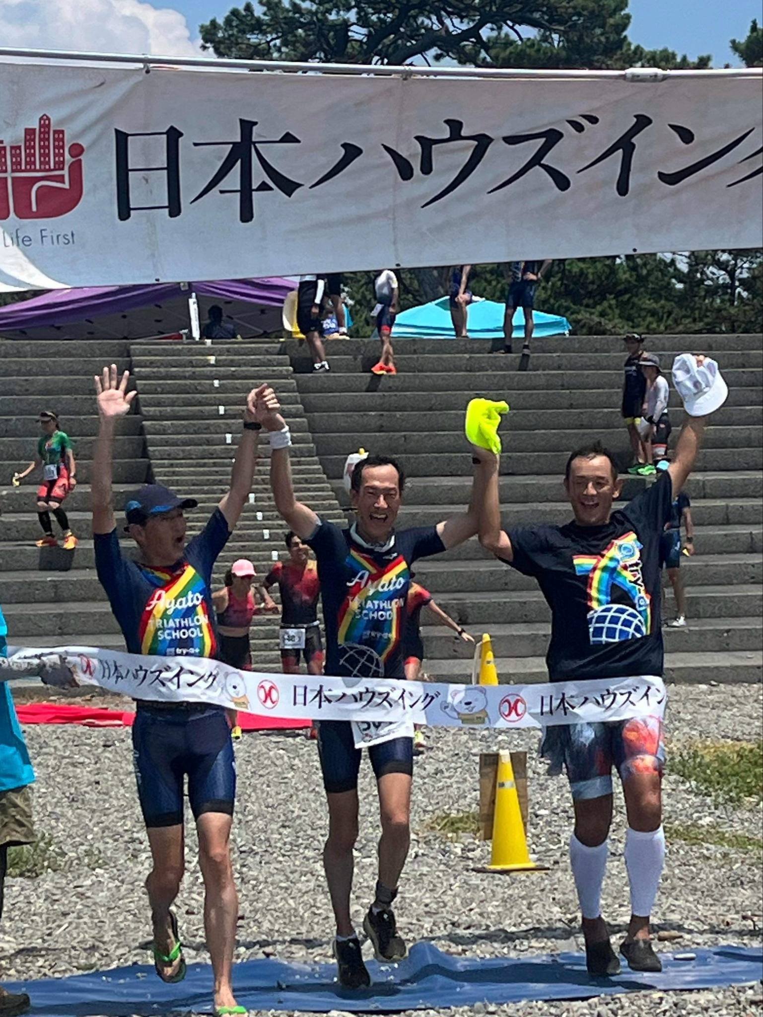 A練習についていけるか?と不安でしたが、参加してみたら、そういうの関係なくて、学びはあるし、楽しいって気持ちの方が勝っちゃいました。 学生時代を思い出すような感覚で通ってます。 コーチ陣も真剣に教えてくれるし、冗談を言い合えるような空気もあるし、楽しいです。 会員の中には、当たり前のように表彰台に乗る選手もいれば、僕のようにフワッとした「印象派」と呼ばれる人もいますが、実力に関係なく、それぞれ一生懸命やってるし、皆んな仲がいいです。 チーム練以外にも、仲のいいメンバーと練習会をしたり、飲みに行ったり、仲間を通じて、いろんなアドバイスも貰える環境に感謝してます。 レース本番では、アヤトトライアスロンスクールのユニフォームを着ていることで、沿道の方から「アヤトー!頑張れー!」と声援をもらうことも多いです。 最初は意味が分からず、「ひょっとして…モテてんのか?追い風か?」って思いましたが、そういうことではなかったです。 とにかく、アヤトチームの皆んなと出場したレースや、アヤトチームの皆んなとの練習を終わった後の帰り道に、「なんか青春感じる…」という感覚があって、それが好きです。